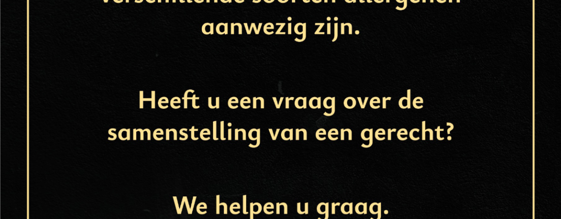 Allergeneninformatie – Wij zijn gecertificeerd Heeft u een voedselallergie? Dan is het belangrijk om te weten wat u eet. In onze...